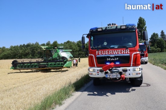 Wels. Gerade noch rechtzeitig konnte Sonntagnachmittag ein Mähdrescherbrand auf einem Feld in Wels-Waidhausen verhindert werden.