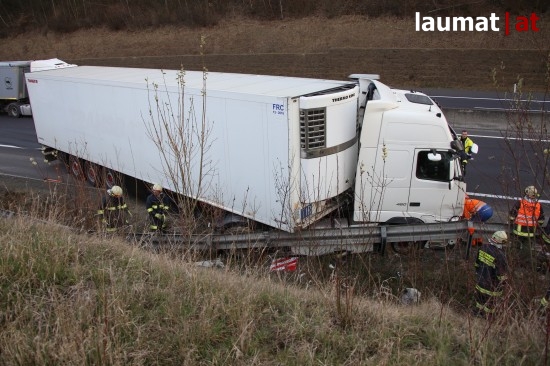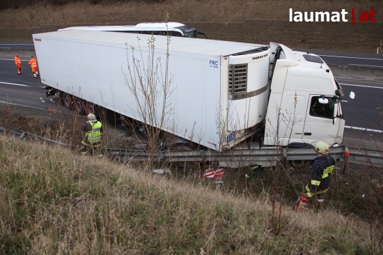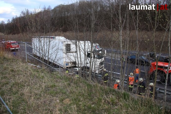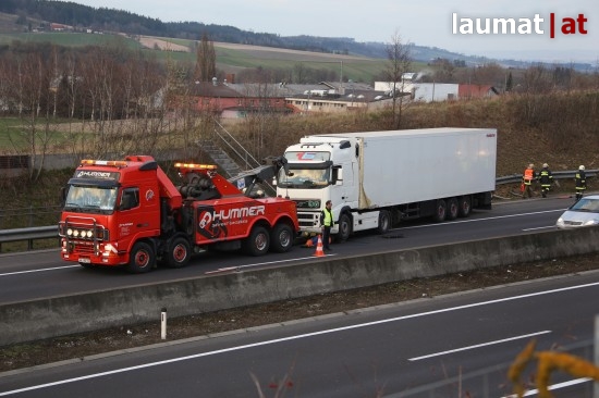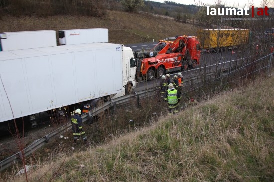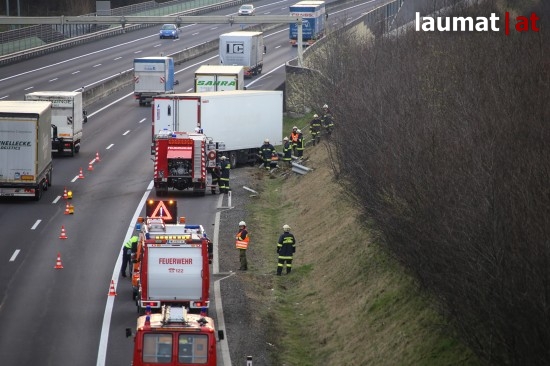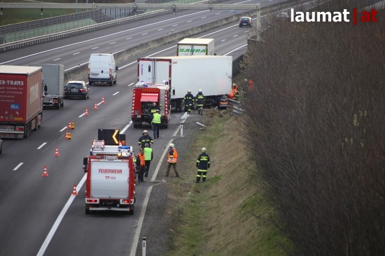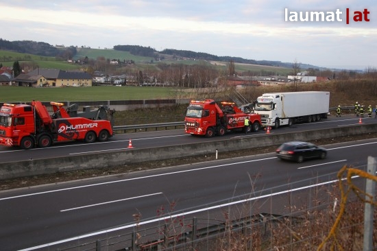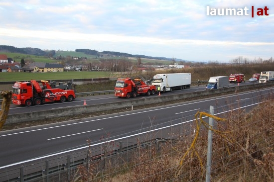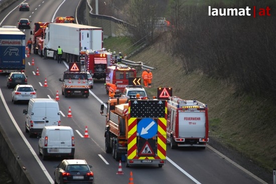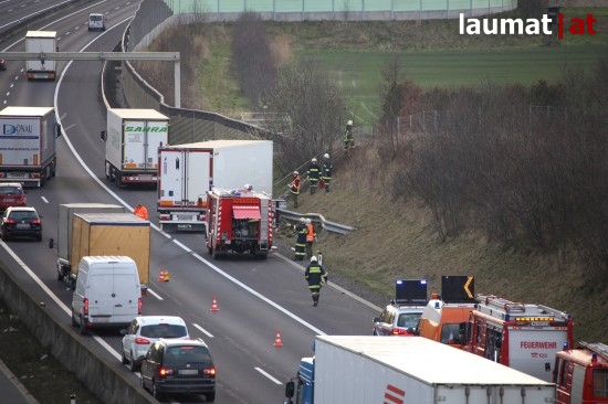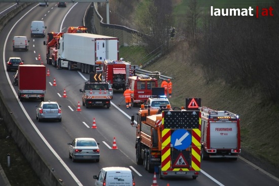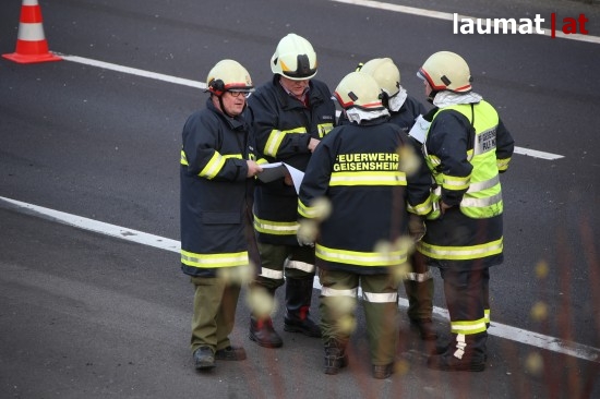 Laut ersten Informationen kam es zwischen Pichl bei Wels und Meggenhofen zu einem Unfall zwischen zwei LKW. Ein Dieseltank eines Schwerfahrzeuges wurde beschädigt, mehrere hundert Liter Diesel treten aus. Die Feuerwehr stand im Einsatz um den Treibstoff zu binden, ebenso die Autobahnmeisterei. Der beschädigte LKW wurde von einem Spezialbergeunternehmen geborgen. Ein Bagger wurde schließlich angefordert um kontaminiertes Erdreich abzutragen.