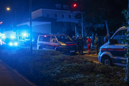 Größerer Einsatz der Polizei samt Rettung und Straßensperre in Wels-Pernau