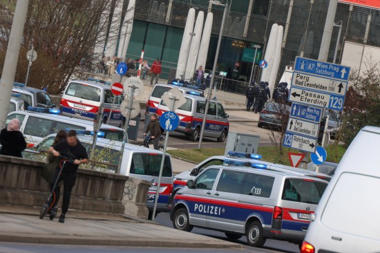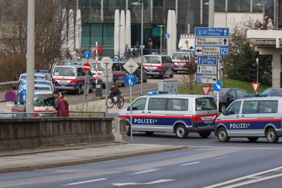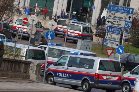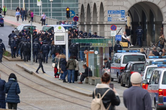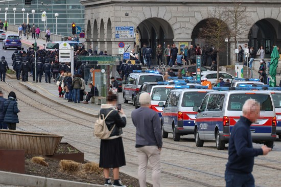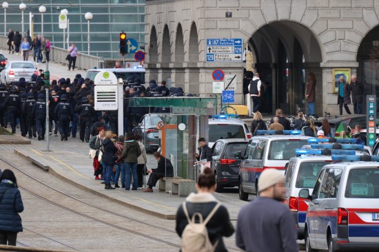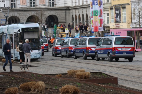 Großaufgebot der Polizei eskortierte "Risikofans" in Linz-Innere Stadt zum Donauparkstadion