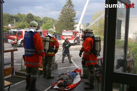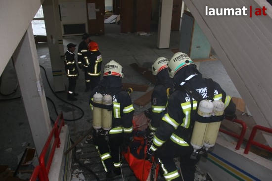 Große Einsatzübung der Feuerwehr in altem Schulgebäude in Grieskirchen
