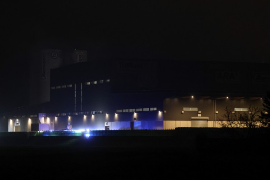 Die Feuerwehr wurde gegen 00:45 Uhr zu einem Brandmeldealarm beim Unternehmen alarmiert, nachdem sich der Brand offenbar bestätigte wurde Alarmstufe 2 ausgerufen, woraufhin Kräfte von insgesamt acht umliegenden Feuerwehren im Löscheinsatz standen.