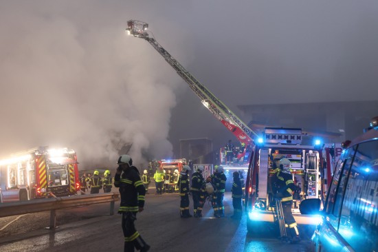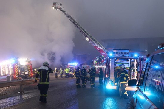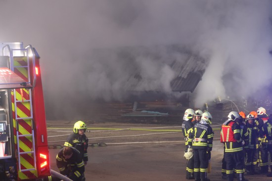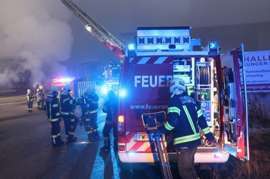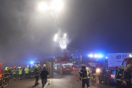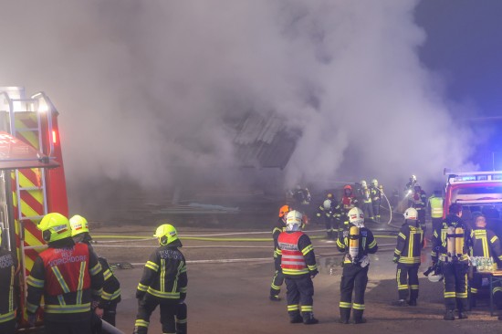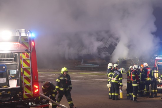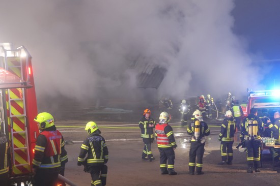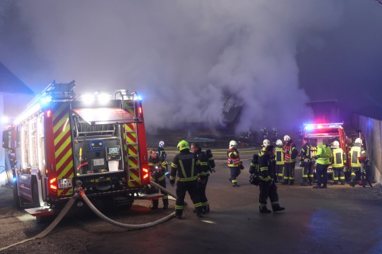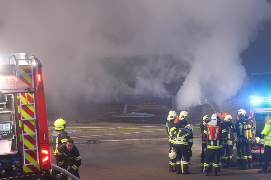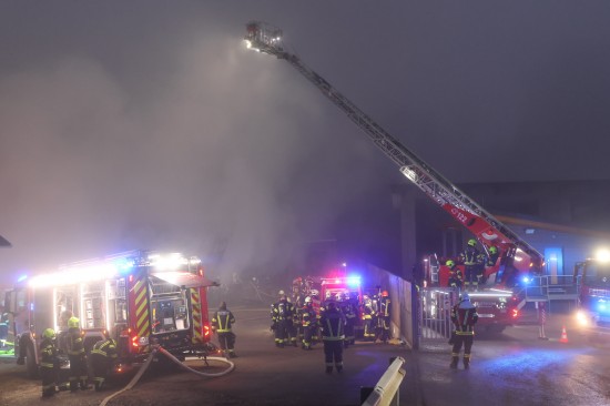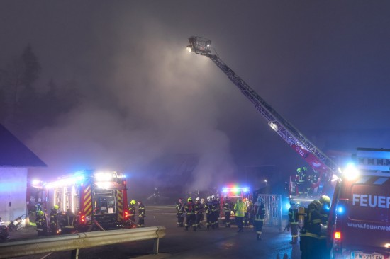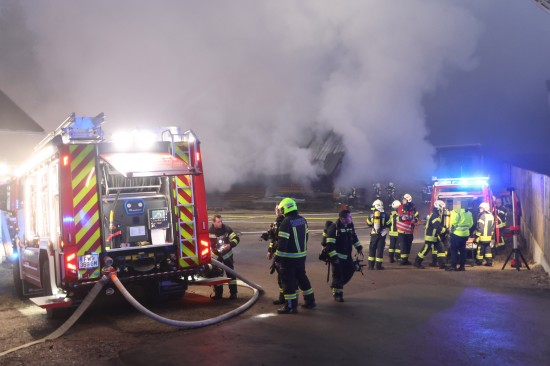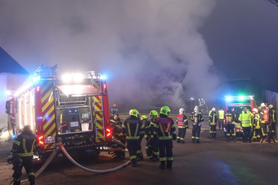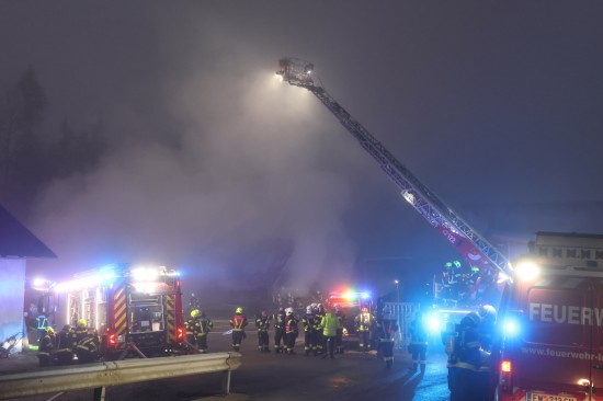 Großeinsatz: Acht Feuerwehren bei Vollbrand einer Halle eines Unternehmens in Kirchham im Einsatz