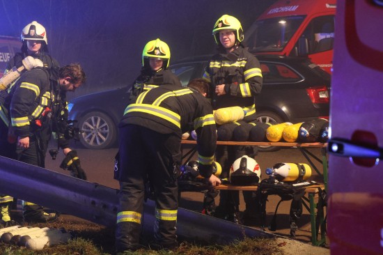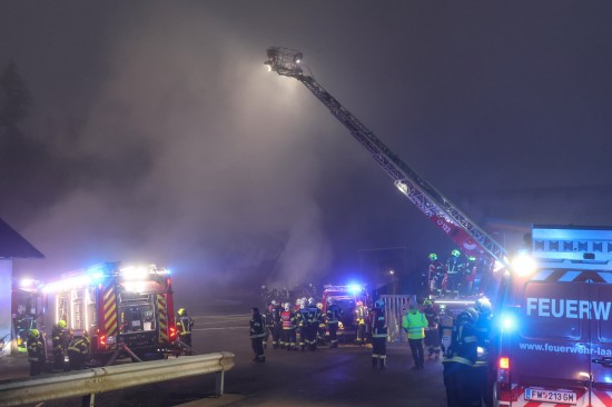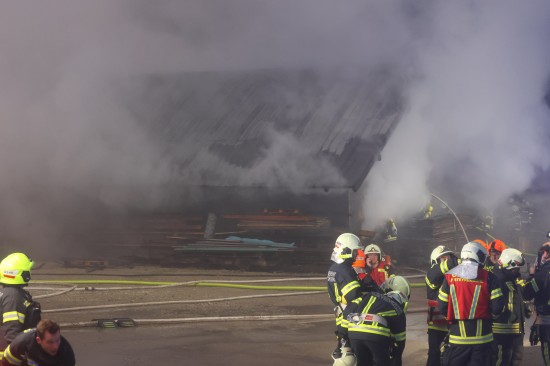 Die Feuerwehr wurde am Nachmittag mit dem Einsatzbegriff "Brand Gewerbe" zu einem Unternehmen im Gemeindegebiet von Kirchham alarmiert. Binnen weniger Minuten war klar, dass es sich um ein größeres Brandereignis handeln muss. Die Halle stand beim Eintreffen der ersten Kräfte bereits in Vollbrand. Die Feuerwehr erhöhte umgehend auf Alarmstufe 2, woraufhin Einsatzkräfte von insgesamt acht umliegenden Feuerwehren in den Einsatz geschickt wurden. Ein Übergreifen des Feuers auf angrenzende Gebäude konnte erfolgreich verhindert werden. Löschwasser konnte über mehrere Pumpen und Löschleitungen aus einem direkt an der Einsatzörtlichkeit vorhandenem Stauraum der Laudach entnommen werden. Verletzte soll es ersten Angaben nach zum Glück nicht gegeben haben. Die Rettung war vorsorglich am Einsatzort. Am frühen Abend war der Brand dann soweit unter Kontrolle. Nachlöscharbeiten dürften sich aber nach bis weit in die Nachtstunden hinein ziehen.