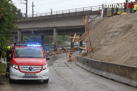In Marchtrenk (Bezirk Wels-Land) standen die Einsatzkräfte von Feuerwehr und Polizei Samstagnachmittag nach einem kleineren Hangrutsch in einem Baustellenbereich im Einsatz.