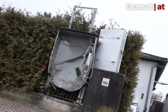 "Bislang unbekannte Täter sprengten am 05. Dezember 2021 gegen 23:45 Uhr einen Zigarettenautomat, welcher in Marchtrenk Bärenstraße an einem Gartenzaun montiert war. Die Täter verwendeten dabei einen Blitzknallkörper. Durch die Wucht der Detonation wurden mehrere Automatenteile bis zu 20 Meter weit auf die Straße sowie in anliegende Gärten geschleudert. Nach der Sprengung näherten sich die zwei vermutlich jugendlichen Täter dem Automat und versuchten, die Zigarettenschachteln sowie das Bargeld zu stehlen. Dabei wurden sie jedoch durch einen Anrainer wahrgenommen und flüchteten daraufhin vom Tatort. Durch die Tat entstand ein erheblicher Sachschaden", berichtet die Polizei.