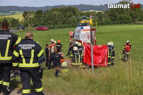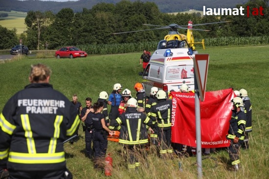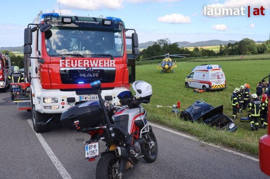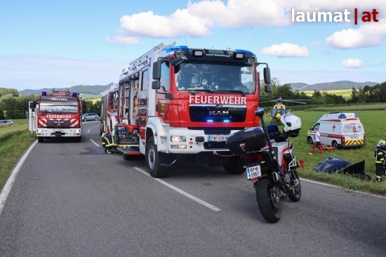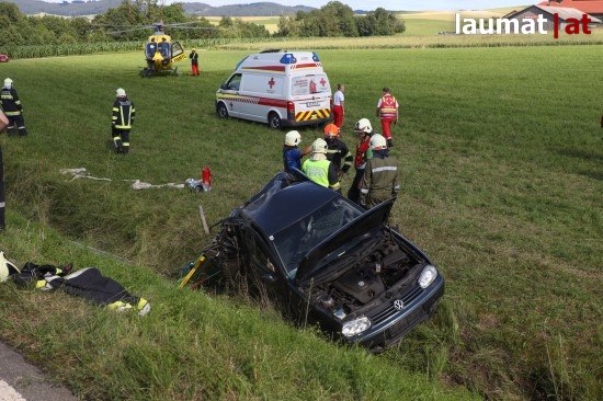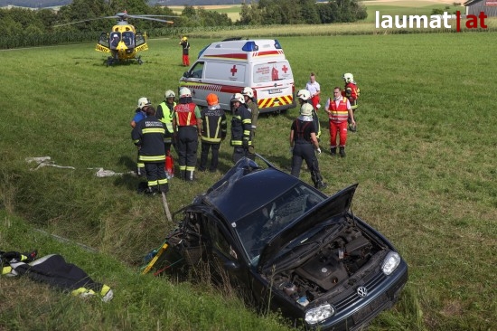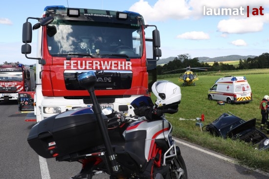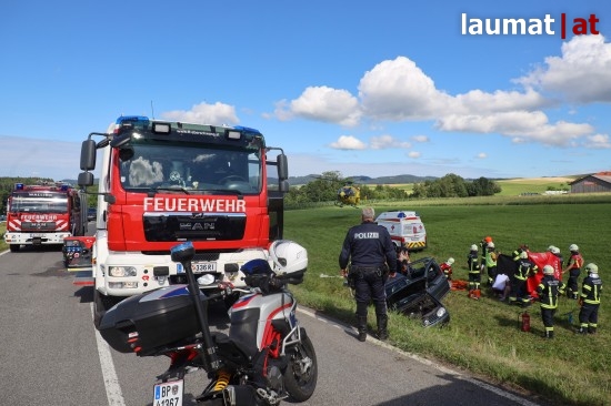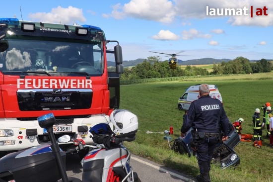Heftiger Autoüberschlag bei Eberschwang fordert mehrere teils Schwerverletzte
