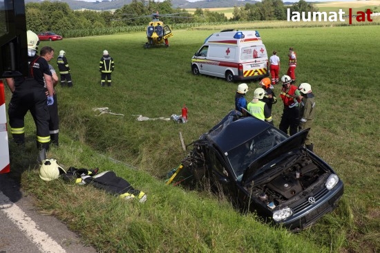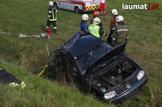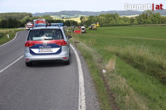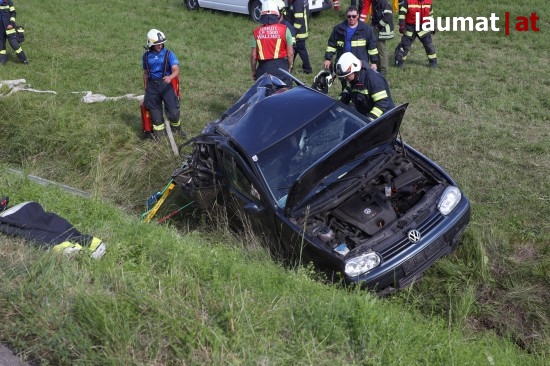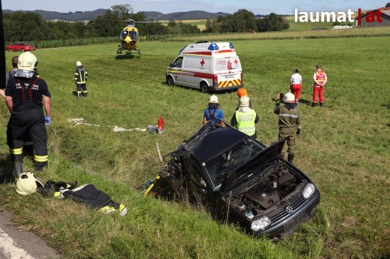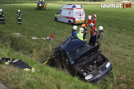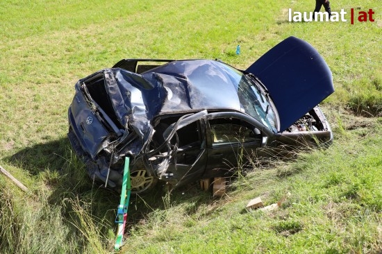 "Eine 18-Jährige aus dem Bezirk Braunau am Inn war mit ihrem PKW am 25. Juni 2022 gegen 15:50 Uhr gemeinsam mit ihrem 22-jährigen Lebensgefährten aus dem Bezirk Braunau am Inn und einem 19-jährigen Freund aus dem Bezirk Ried im Innkreis auf der L1070 Gutenshamer Straße Richtung Eberschwang unterwegs. Aus bislang unbekannter Ursache kam der Wagen im Gemeindegebiet von Eberschwang bei Straßenkilometer 3,260, in einer leichten Linkskurve auf das rechte Straßenbankett, schlitterte eine Böschung hinunter und überschlug sich. Die 18-Jährige wurde unbestimmten Grades verletzt und in das Krankenhaus Barmherzige Schwestern Ried gebracht. Ihr Lebensgefährte wurde ebenfalls unbestimmten Grades verletzt und nach der Erstversorgung mit dem Notarzthubschrauber Christophorus Europa 3 in das Klinikum Wels geflogen. Der 19-Jährige musste von der Feuerwehr aus dem Fahrzeug geborgen werden. Er wurde auch unbestimmten Grades verletzt und in das Krankenhaus Barmherzige Schwestern Ried eingeliefert", berichtet die Polizei.