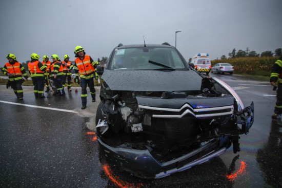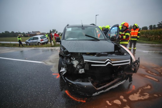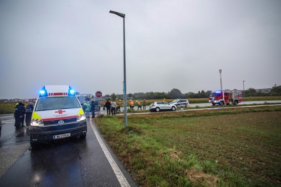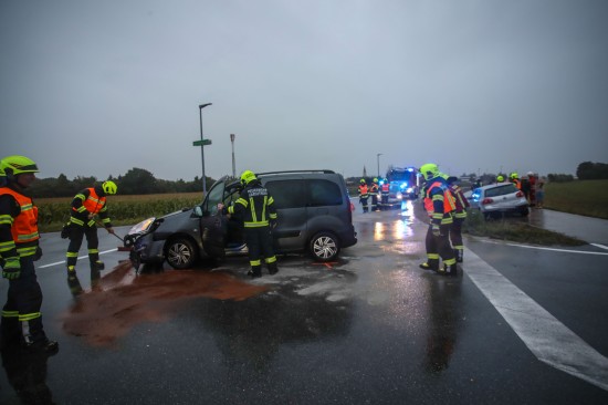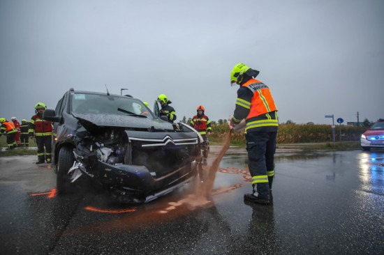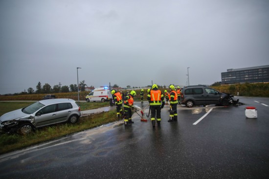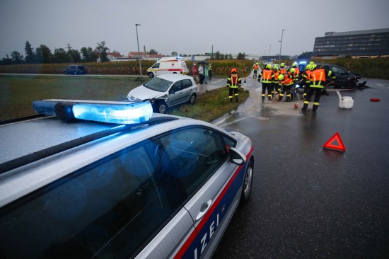 Heftiger Crash zwischen zwei Autos in einem Kreuzungsbereich in Marchtrenk