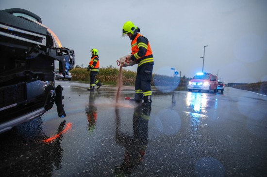 Ein Kreuzungscrash zwischen zwei PKW hat sich Freitagabend in Marchtrenk (Bezirk Wels-Land) ereignet. Die Feuerwehr stand bei Aufräumarbeiten im Einsatz.