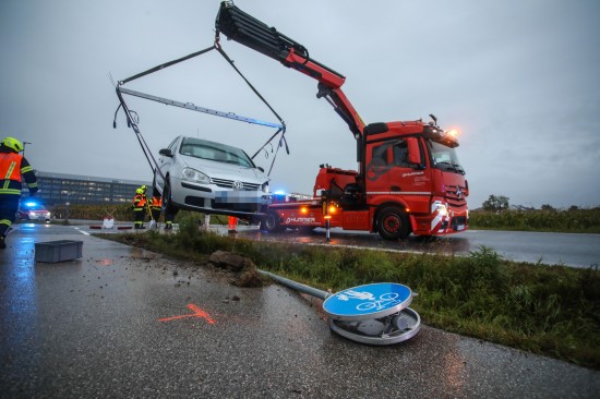Der Unfall passierte Freitagabend im Kreuzungsbereich der Ludwig-Szinicz-Straße mit der Kornfeldstraße und der Sternmühlstraße im Gemeindegebiet von Marchtrenk. Zwei PKW sind aus noch unbekannten Gründen im dortigen Kreuzungsbereich zusammengestoßen. Eines der Unfallfahrzeuge kam inmitten der Kreuzung zum Stillstand, das zweite Fahrzeug rammte nach dem Crash noch ein Verkehrszeichen am Straßenrand. Die Einsatzkräfte der Feuerwehr führten in weiterer Folge nach der polizeilichen Unfallaufnahme die Aufräumarbeiten durch. Die Unfallfahrzeuge wurden von den zwei verständigten Abschleppunternehmen abgeholt.