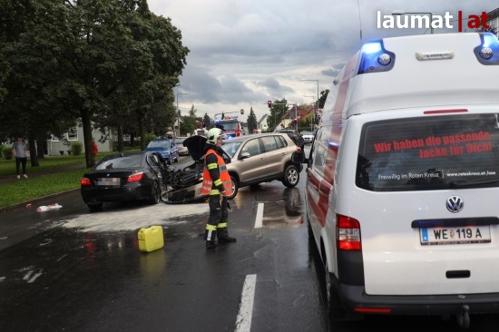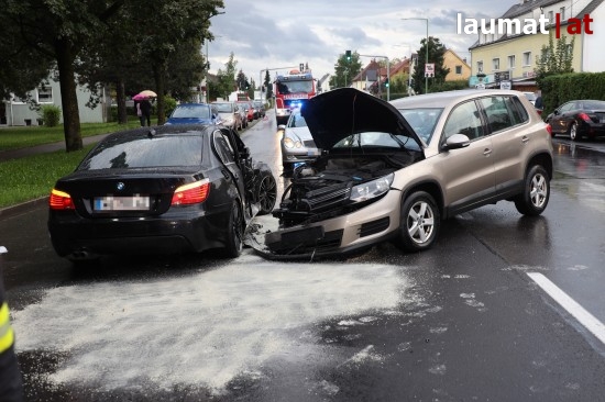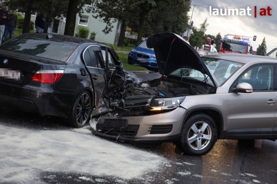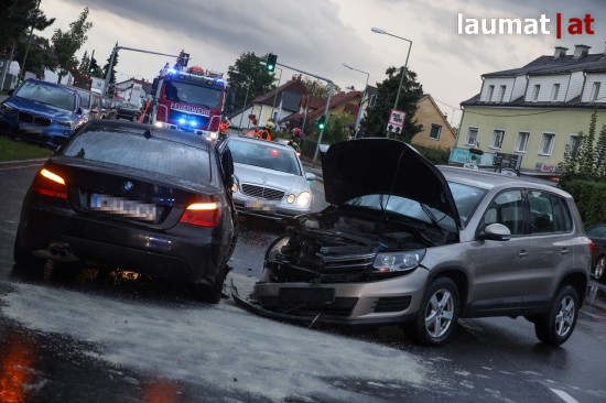 Der Verkehrsunfall ereignete sich auf der B1 Wiener Straße beziehungsweise Salzburger Straße im Welser Stadtteil Lichtenegg. Aus bisher unbekannter Ursache kam es dort zu einem Verkehrsunfall zwischen zwei PKW. Ein PKW stieß mit größerer Wucht gegen die Beifahrerseite des zweitbeteiligten Wagens. Die Feuerwehr, sowie zwei Rettungsfahrzeuge und die Polizei standen daraufhin im Einsatz. Die Verletzten wurden vor Ort erstversorgt, ersten Angaben nach wurden mehrere Personen leicht verletzt. Die Feuerwehr band ausgelaufene Betriebsmittel.