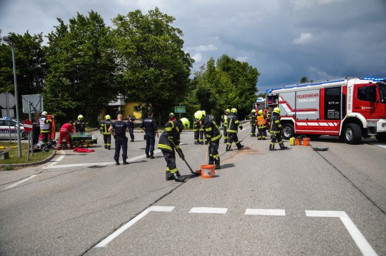 Der Unfall passierte an der Kreuzung der B137 Innviertler Straße, Ziegeleistraße mit der L1233 Krenglbacher Straße, Ziegeleistraße und Wörist, an der Gemeindegrenze zwischen Buchkirchen und Krenglbach. Die Einsatzkräfte zweier Feuerwehren wurden zur Personenrettung nach einem Verkehrsunfall zwischen zwei PKW alarmiert. Eine Person wurde bei dem Unfall mittelschwer verletzt. Die Person war zum Glück aber nicht im Fahrzeug eingeklemmt. Rettung und Notarzt standen ebenso im Einsatz. Die Feuerwehr sicherte die Unfallstelle ab und verbrachte die beiden Fahrzeuge aus dem Kreuzungsbereich.