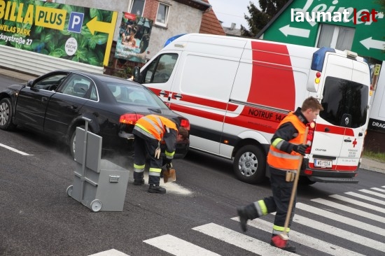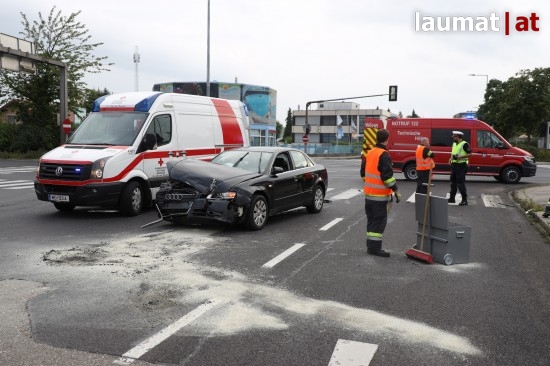 Im ampelgeregelten Kreuzungsbereich der B1 Wiener- beziehungsweise Linzer Straße mit der B137 Innviertler Straße sowie der B138 Pyhrnpass Straße kollidierten aus bisher noch unbekannten Gründen zwei Fahrzeuge. Eines der Unfallfahrzeuge wurde in ein Regenwassersickerbecken eines angrenzenden Parkplatzes geschleudert, der zweite Wagen kam auf der Straße zum Stehen. Die Unfallbeteiligten erlitten ersten Angaben nach leichte Verletzungen. Feuerwehr, Rettungsdienst und die Polizei standen im Einsatz.