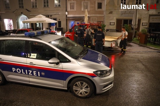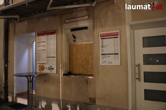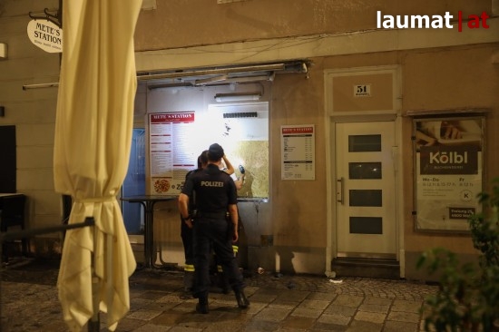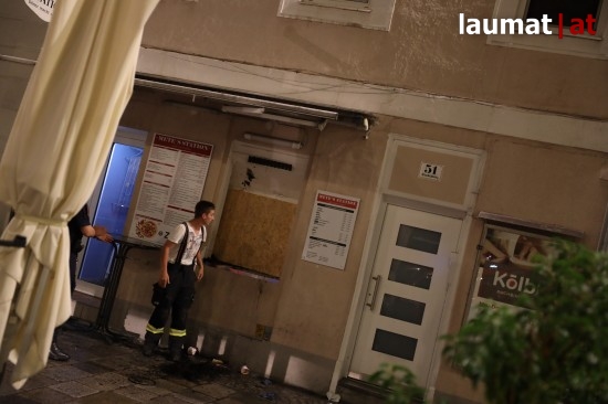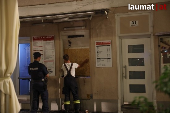 Wels. Einsatzkräfte der Feuerwehr und Polizei standen in der Nacht auf Montag in Wels-Innenstadt im Einsatz, um eine Scheibe eines Imbiss-Lokals zu verschalen.