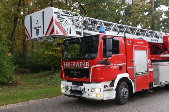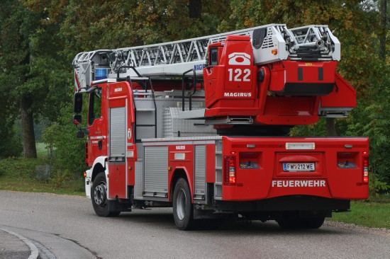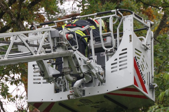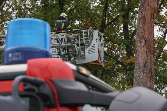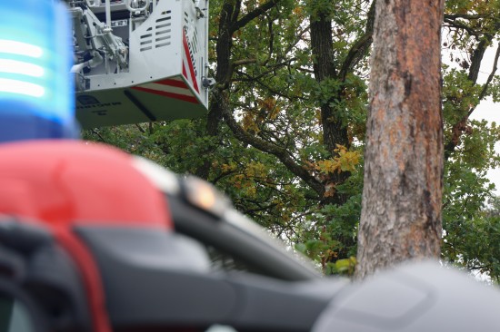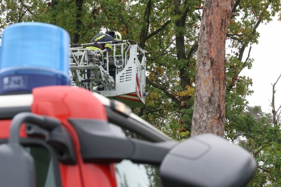 Katze auf Baum: Feuerwehr mit Drehleiter bei Tierrettung in Wels-Puchberg im Einsatz