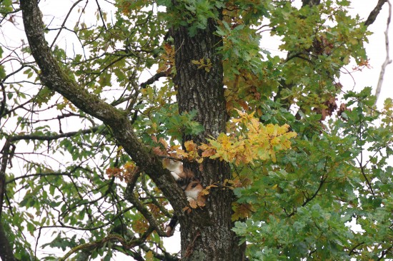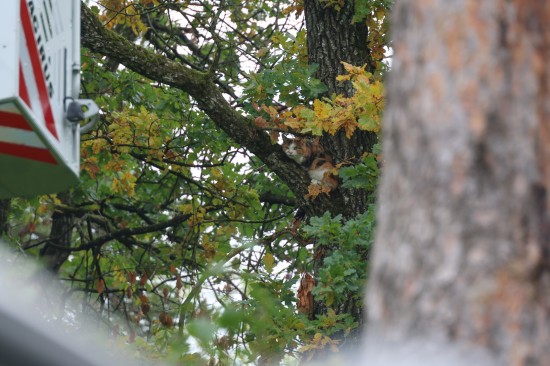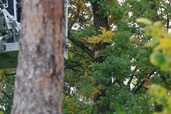 Die Feuerwehr wurde zu einer Katze, die offenbar bereits längere Zeit miauend auf einem Baum in einem kleinen Waldstück im Welser Stadtteil Puchberg saß. Vom Versuch, das Tier mittels Drehleiter vom Baum zu holen, der gerade noch so erreichbar war, hielt die Katze sichtlich wenig. Sie stieg dann auf einen sehr kleinen Ast, konnte von dort zurück auf den Stamm gelotst werden, ehe sie dann doch den Absprung vom Baum wagte. Das Tier dürfte diesen offensichtlich unverletzt überstanden haben. Die Feuerwehr konnte wieder einrücken.