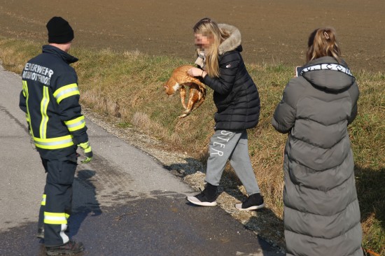 In Offenhausen (Bezirk Wels-Land) hat die Feuerwehr Mittwochmittag eine Katze aus einem Kanalrohr gerettet.
