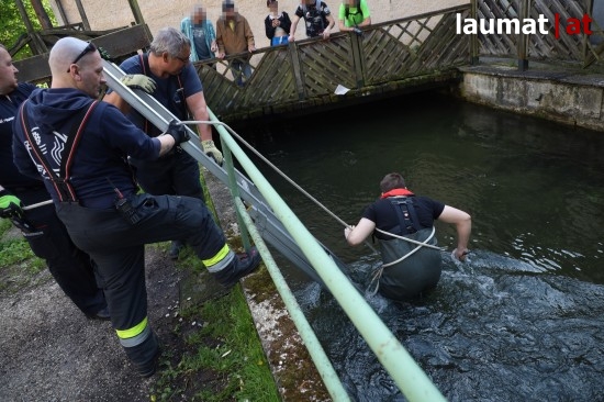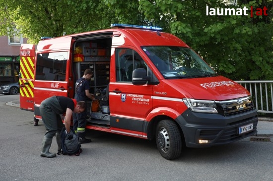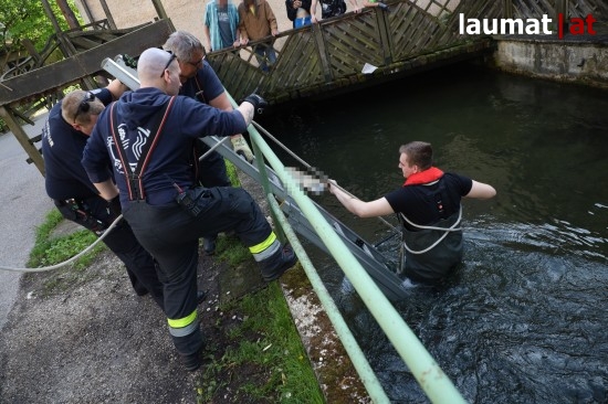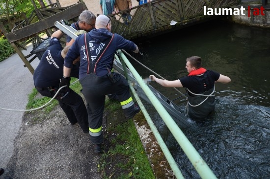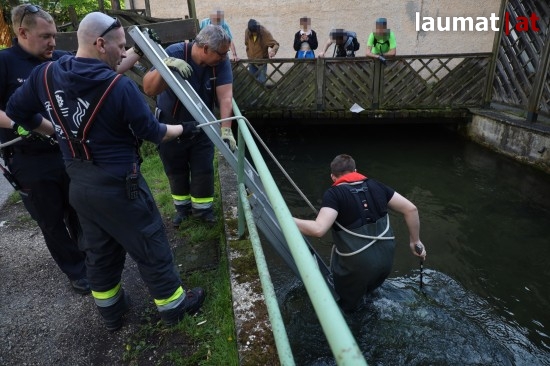 Wels. Einsatzkräfte der Feuerwehr waren Samstagabend in Wels-Innenstadt im Einsatz, um eine Kennzeichentafel aus dem Welser Mühlbach zu bergen.