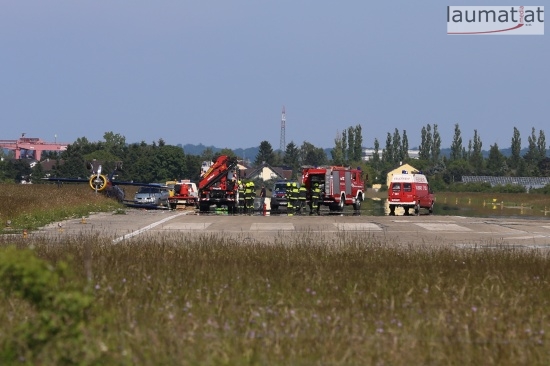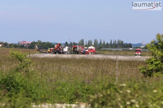 Kleinflugzeug am Welser Flugplatz beim Starten überschlagen