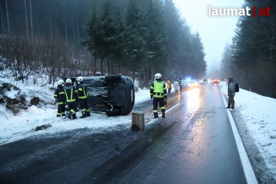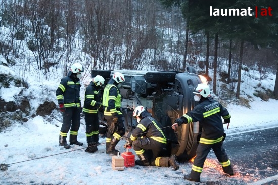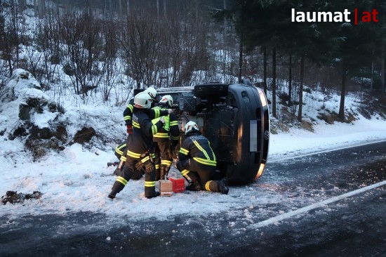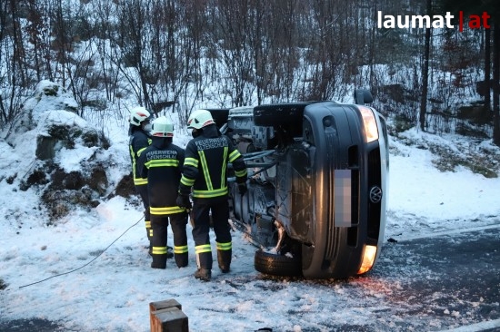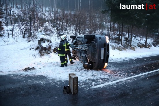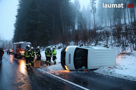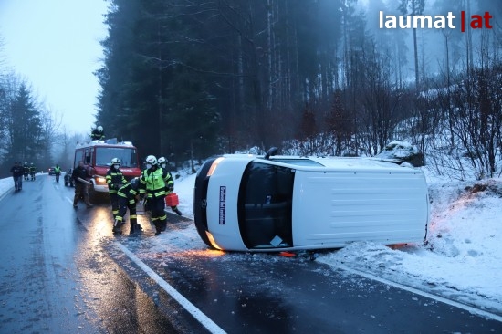 Kleintransporter bei Verkehrsunfall in Helfenberg umgestürzt