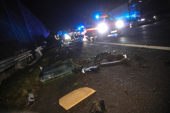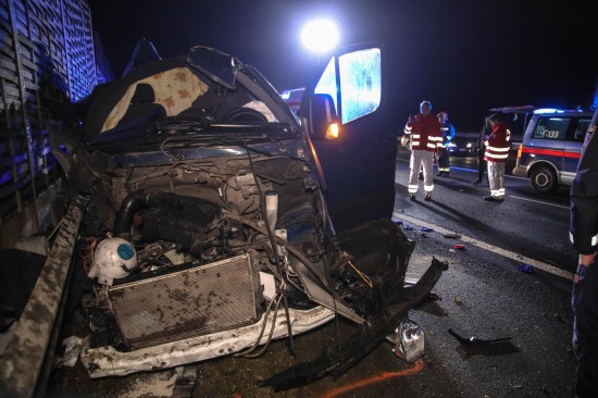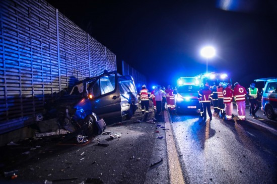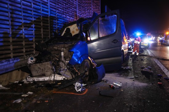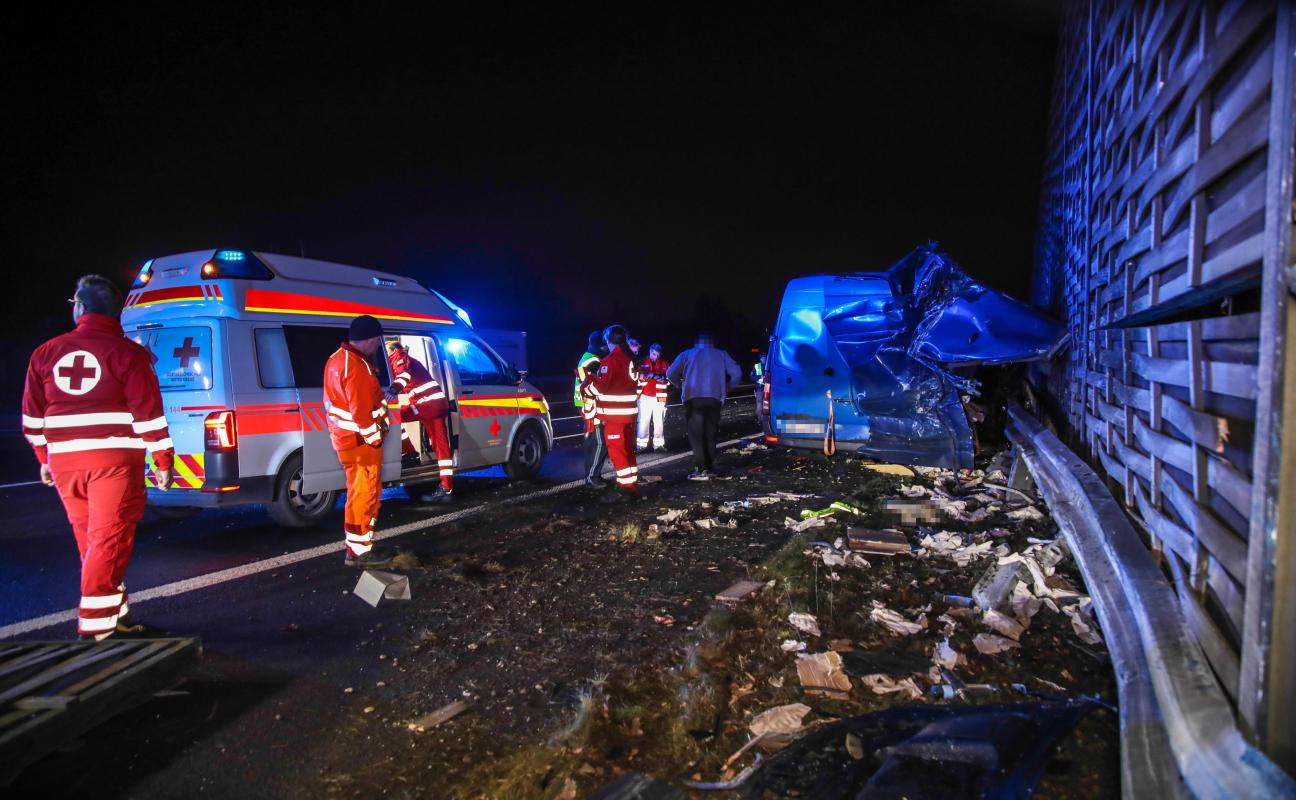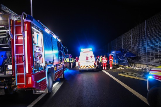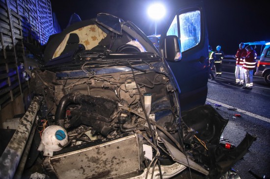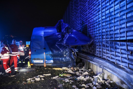 Kleintransporter nach Crash mit PKW auf Innkreisautobahn in Wels-Oberthan regelrecht aufgerissen