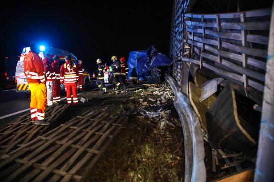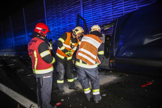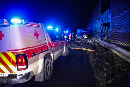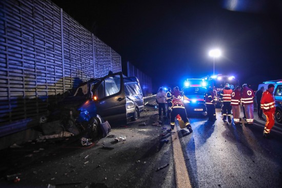 Der Unfall passierte am späteren Freitagabend auf der A8 Innkreisautobahn unmittelbar vor der Abzweigung zur A25 Welser Autobahn im Bereich des Knoten Wels im Welser Stadtteil Oberthan. Ersten Angaben zufolge kam es offenbar zu einer Kollision zwischen einem Kleintransporter und einem PKW. Die Einsatzkräfte der Feuerwehr wurden zu einem Verkehrsunfall mit eingeklemmter Person alarmiert. Glücklicherweise war niemand eingeklemmt. Der PKW war schwer beschädigt, der Kleintransporter wurde regelrecht an der Lärmschutzwand aufgerissen. Wie durch ein Wunder gab es nur zwei Leichtverletzte zu beklagen. Einer der beiden Verletzten wurden nach der Erstversorgung durch den Rettungsdienst ins Klinikum Wels eingeliefert. Die Feuerwehr sicherte die Unfallstelle ab, band ausgelaufene Betriebsmittel und unterstützte bei den Aufräumarbeiten.