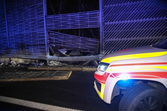 "Zu einem Verkehrsunfall mit einem Suchtgiftlenker kam es am 05. Dezember 2025 gegen 20:50 Uhr auf der A8 Innkreisautobahn in Fahrtrichtung Linz. Ein 56-jähriger Rumäne fuhr dort mit seinem Kleintransporter. Bei der Autobahnaufteilung zur A25 Welser Autobahn wechselte er auf den dritten Fahrstreifen, um Richtung Linz weiterzufahren. Zum selben Zeitpunkt fuhr ein 19-jähriger Deutscher aus dem Bezirk Grieskirchen mit seinem PKW auf dem vierten Fahrstreifen, um den Transporter zu überholen. Kurz vor der Aufteilung lenkte er plötzlich nach rechts, um Richtung Graz weiterzufahren. Dabei kollidierte er mit dem Transporter, welcher dadurch in die Lärmschutzwand gedrängt wurde. Die Lärmschutzwand wurde durch die Wucht aus ihrer Verankerung gerissen. Beide Lenker erlitten leichte Verletzungen, wobei der 19-Jährige ins Klinikum Wels eingeliefert wurde. Nachdem bei ihm eindeutige Symptome einer Suchtgiftbeeinträchtigung vorlagen und die Beamten Cannabisgeruch wahrnehmen konnten, wurde im Krankenhaus eine klinische Untersuchung wegen einer möglichen Beeinträchtigung durchgeführt. Nachdem diese ein positives Ergebnis lieferte, wurde dem 19-Jährigen der Führerschein vorläufig abgenommen. Er wird angezeigt."