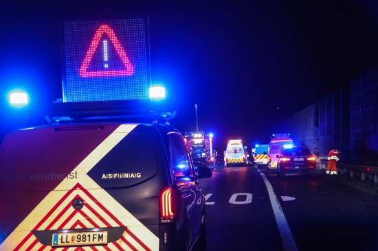 Ein schwerer Verkehrsunfall hat sich am späteren Freitagabend auf der A8 Innkreisautobahn bei Wels-Oberthan ereignet. Zwei Personen wurden bei dem Unfall leicht verletzt.