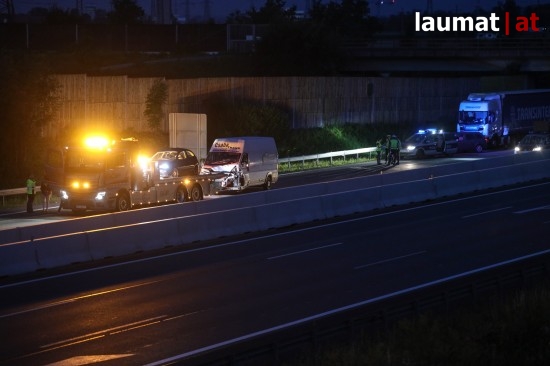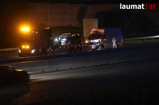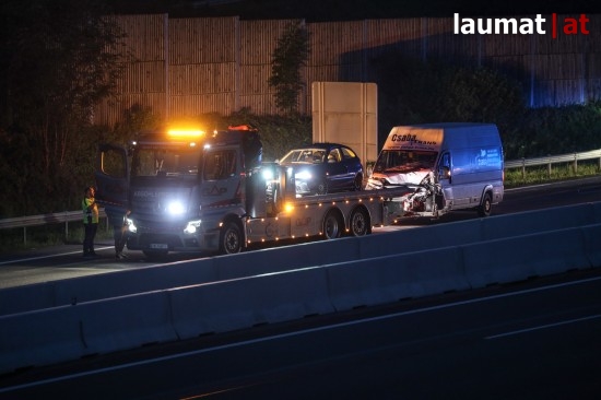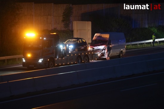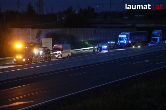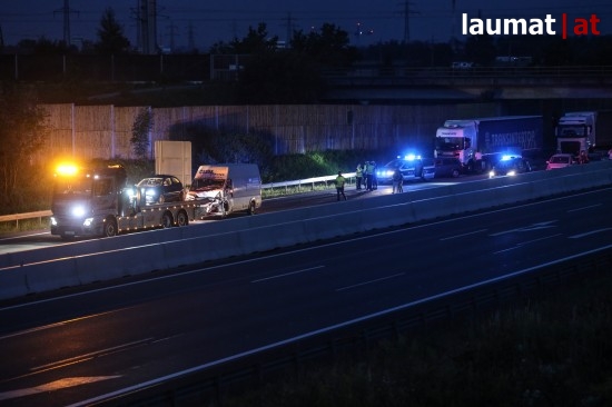 "Am 14. August 2021 gegen 03:45 Uhr bremste ein 34-jähriger Rumäne seinen Sattelzug auf der Welser Autobahn bei Wels wegen eines Verkehrsstaus ab. Ein dahinter ebenfalls Richtung Linz fahrender 29-jähriger Bulgare verringerte in Folge dessen ebenfalls die Geschwindigkeit seines PKW. Ein danach mit seinem Transporter fahrender 48-jähriger Ungar dürfte das Stauende übersehen haben, kollidierte mit dem PKW, der deshalb gegen die Betonmittelleitschiene geschleudert wurde, und danach mit dem Sattelanhänger. Glücklicherweise wurde dabei niemand verletzt, die Autobahn musste jedoch für Unfallaufnahme und Reinigungsarbeiten bis etwa 05:30 Uhr zur Gänze gesperrt werden", berichtet die Polizei.
