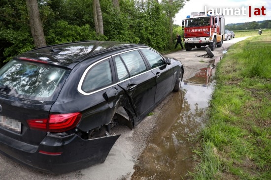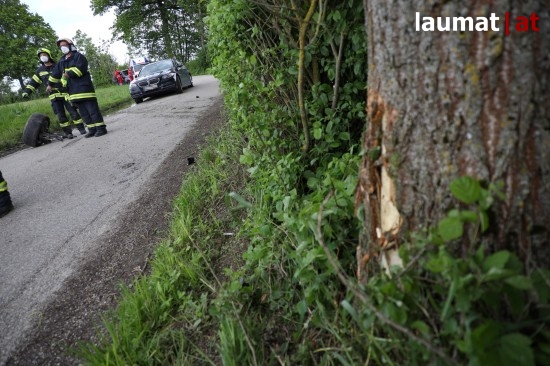 Der Unfall ereignete sich auf der Straße Riethal im Gemeindegebiet von Gunskirchen. Ein Auto ist am Beginn einer Kurve offenbar seitlich gegen einen Baum gekracht. Dabei riss das Hinterrad ab, das Auto kam ins Schleudern. Die Einsatzkräfte wurden aufgrund einer eCall-Auslösung alarmiert, weil sich die Insassen nicht meldeten, wurden zudem Feuerwehr, Rettungsdienst und Notarzt alarmiert. Eingeklemmt war entgegen der Befürchtungen jedoch niemand. Die Feuerwehr sicherte die Unfallstelle ab, band ausgelaufene Betriebsmittel und unterstützte den Abschleppdienst beim Abtransport des Unfallfahrzeuges. Die Insassen blieben offensichtlich unverletzt. Die Polizei war hingegen mit den Erhebungen befasst, wer der beiden Insassen das Unfallfahrzeug gelenkt hat.