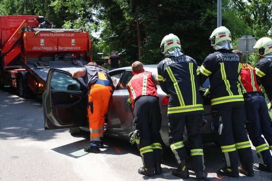 Eine verletzte Autolenkerin forderte Samstagmittag ein Unfall in einem Kreuzungsbereich in Thalheim bei Wels (Bezirk Wels-Land).