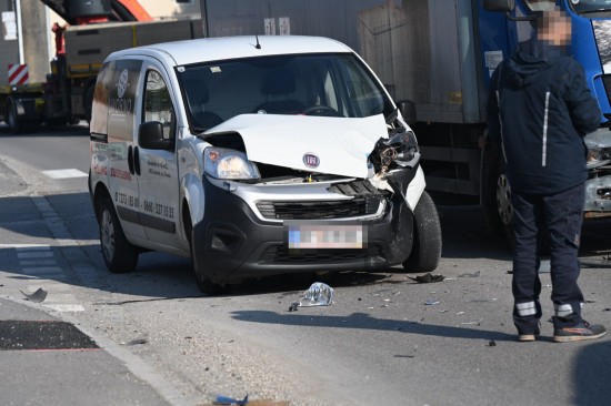 Kollision zwischen Kleintransporter und LKW in Eferding fordert einen Verletzten