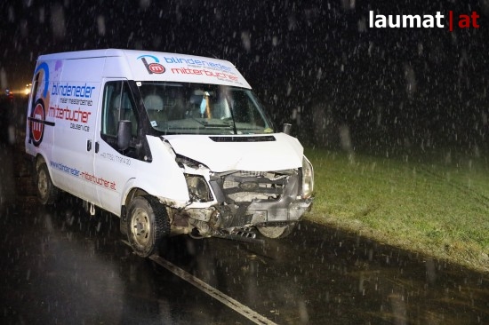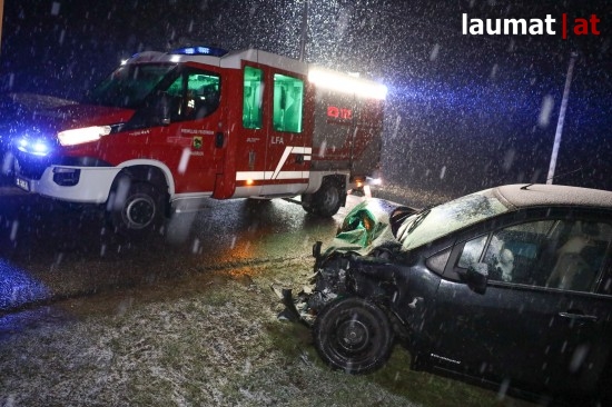 Eine Kreuzungskollision zwischen einem PKW und einem Kleintransporter bei Eberschwang (Bezirk Ried im Innkreis) hat Mittwochabend zwei Verletzte gefordert.