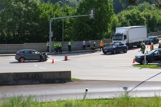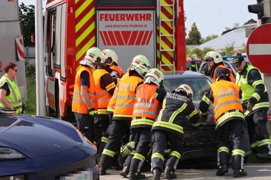 Kreuzungscrash zwischen zwei PKW auf Pyhrnpass Straße in Thalheim bei Wels fordert einen Verletzten
