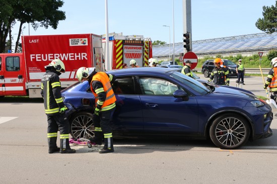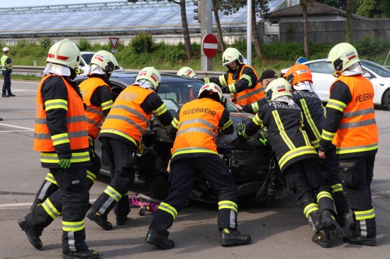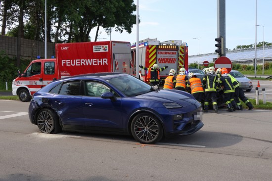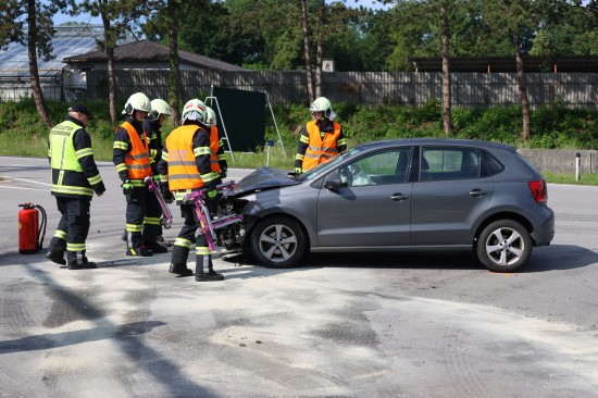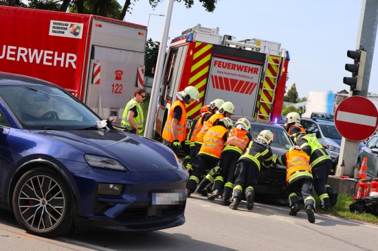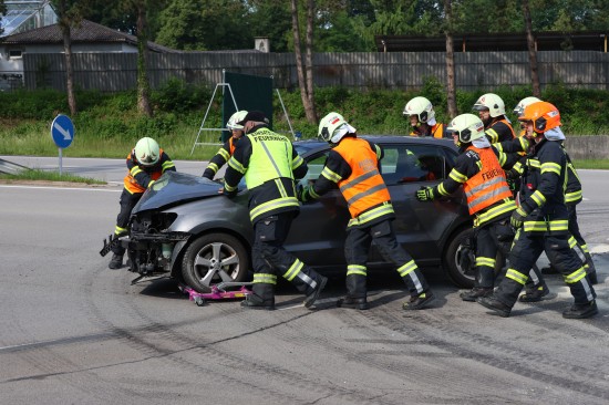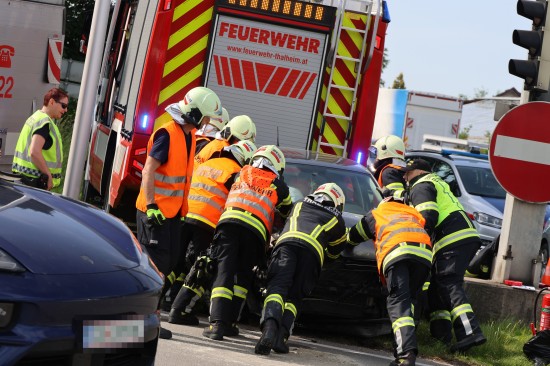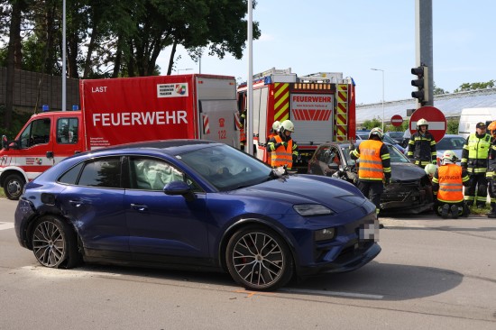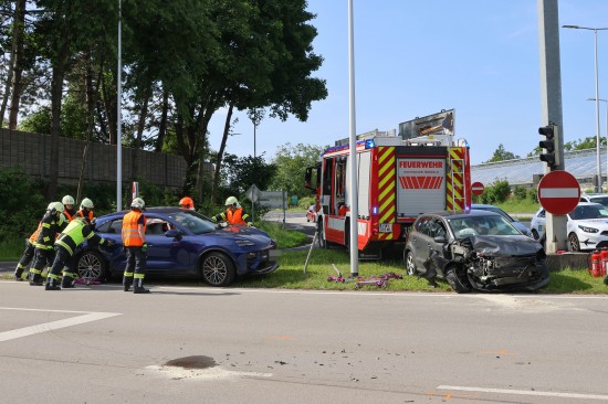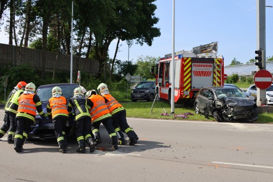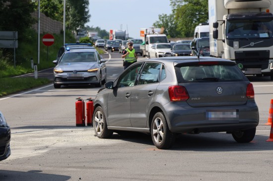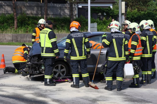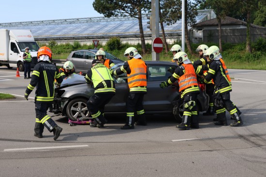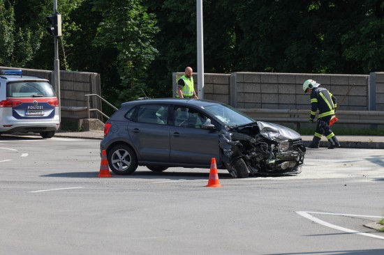 Thalheim bei Wels. Einen Leichtverletzten forderte Mittwochvormittag ein Kreuzungscrash zwischen zwei PKW auf der B138 Pyhrnpass Straße in Thalheim bei Wels (Bezirk Wels-Land).
