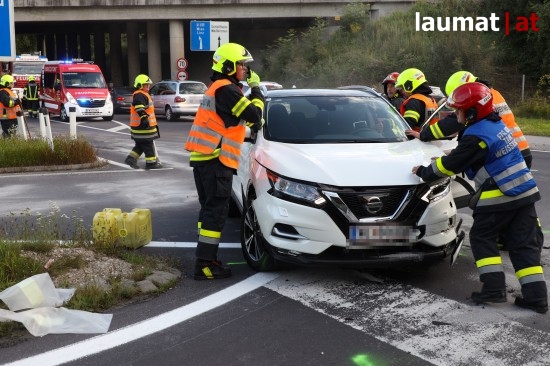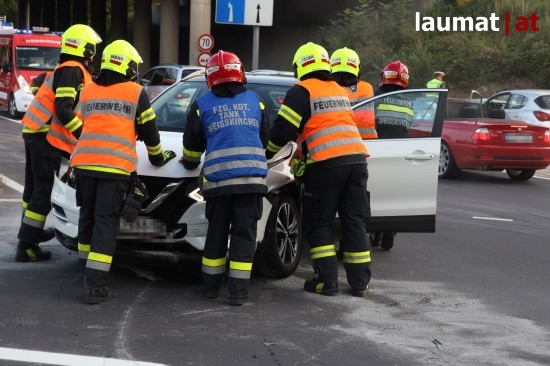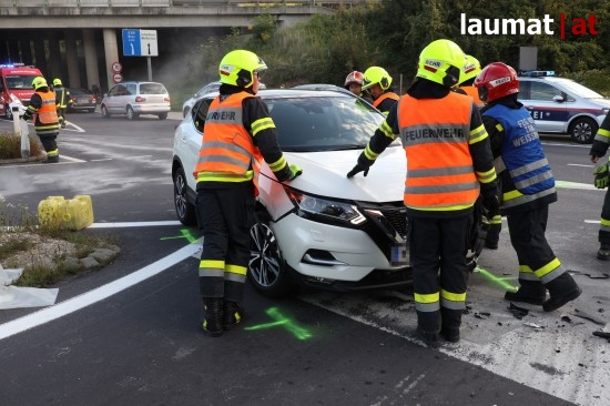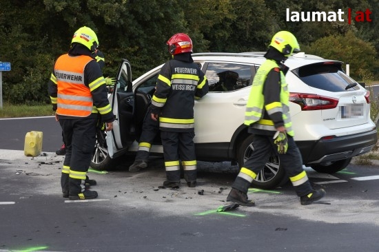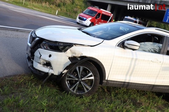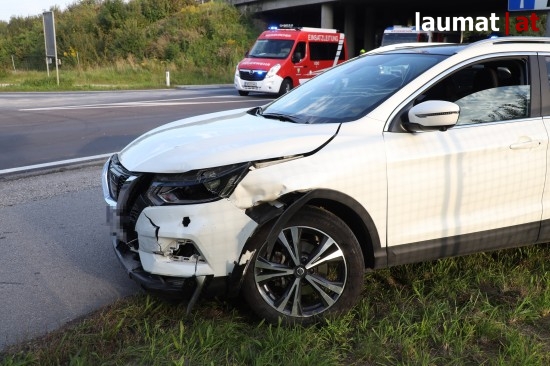 Eine Kreuzungskollision im Bereich der Autobahnauf- und abfahrt in Weißkirchen an der Traun (Bezirk Wels-Land) forderte Dienstagabend eine verletzte Person.