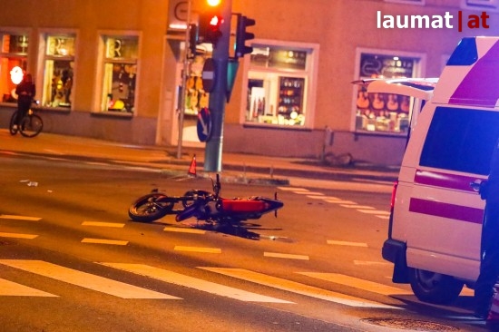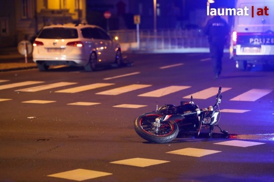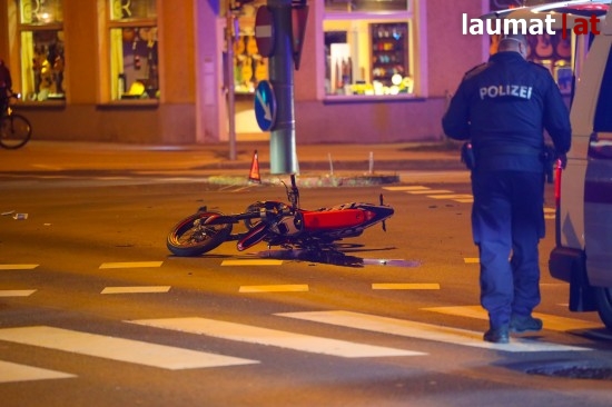 Kreuzungsunfall zwischen Moped und PKW in Wels-Innenstadt