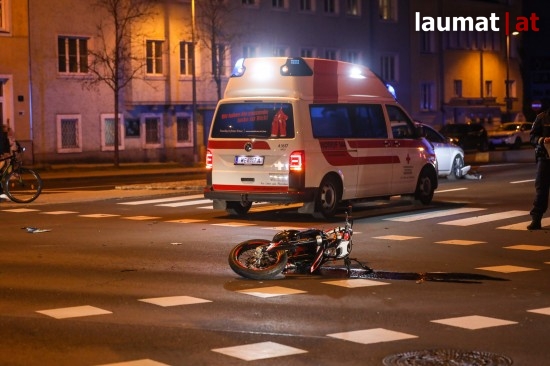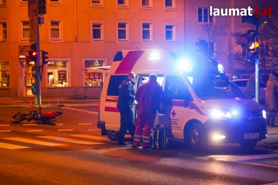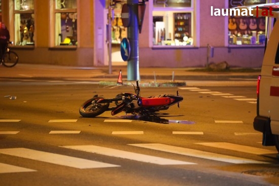 Ein Kreuzungsunfall zwischen einem Moped und einem PKW hat sich Sonntagabend in Wels-Innenstadt ereignet. Eine Person wurde bei dem Unfall verletzt.