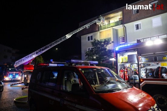 Feuerwehr, Rettungsdienst und Polizei standen in der Nacht auf Samstag bei einem Küchenbrand in einer Wohnanlage in Wels-Vogelweide im Einsatz.