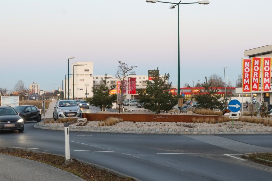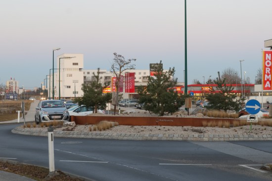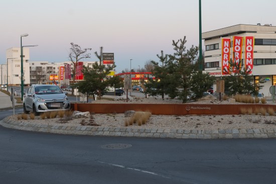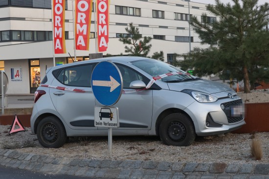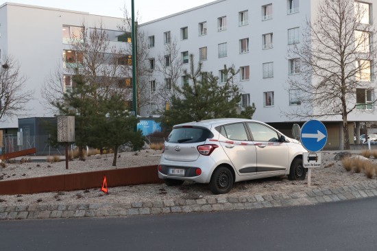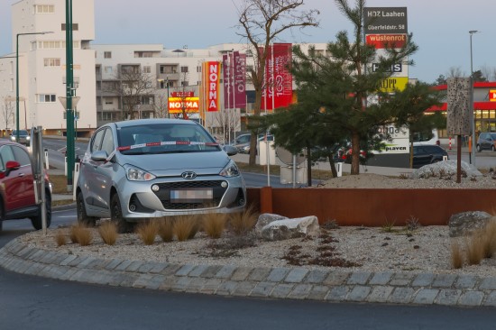 Kurioser Anblick: Auto steht mitten im "Maschinenring-Kreisverkehr" in Wels-Vogelweide