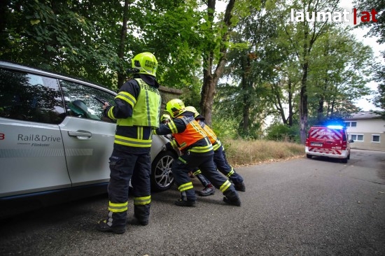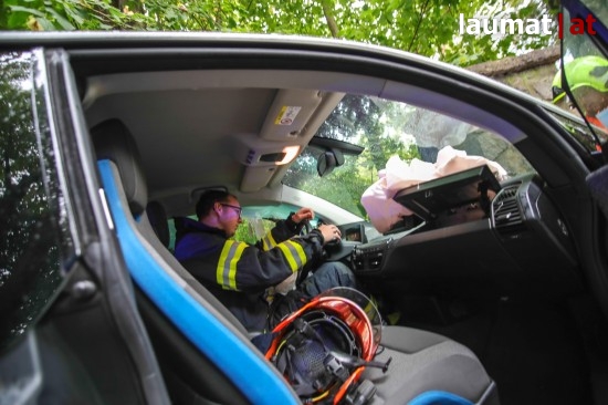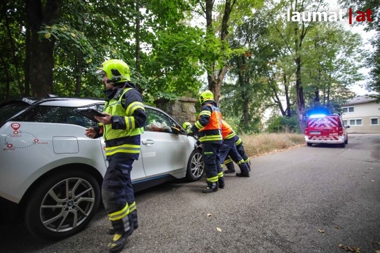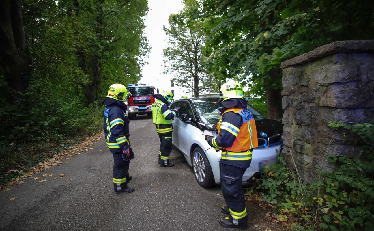 Die Feuerwehr wurde zu den Aufräumarbeiten beziehungsweise zur Absicherung des Elektorfahrzeuges alarmiert. Die Einsatzkräfte der Feuerwehr schoben den PKW auf die Seite und stellten ihn dort ab.