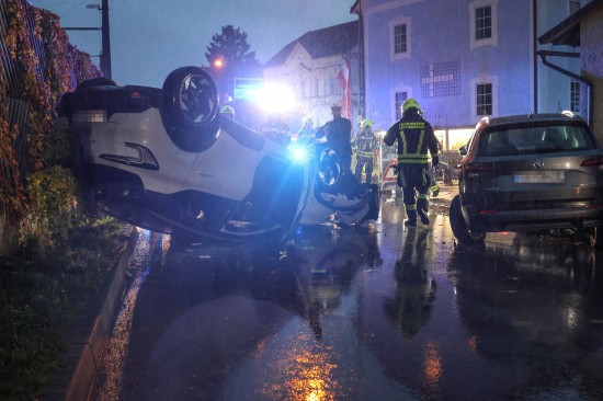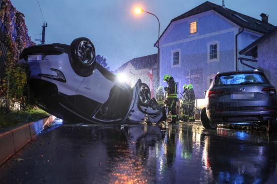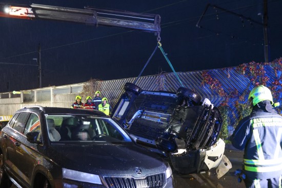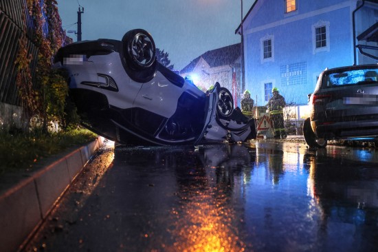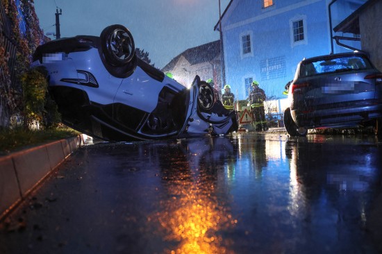 Lenkerin verletzt: Auto bei Unfall mit parkendem PKW in Ansfelden überschlagen