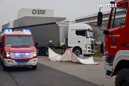 LKW-Lenker nach internem Notfall in Ansfelden durch Feuerwehr aus Fahrerkabine gerettet
