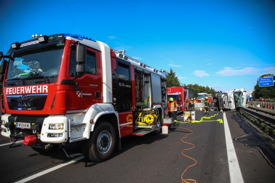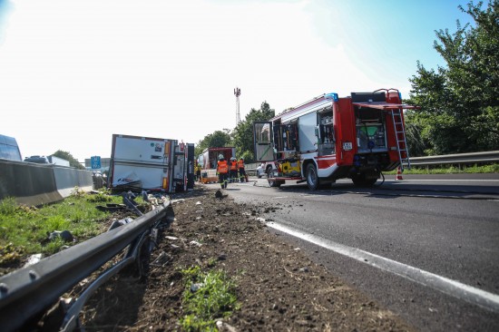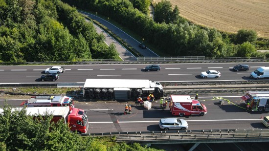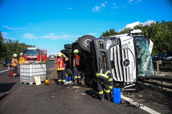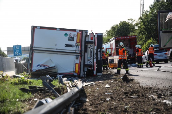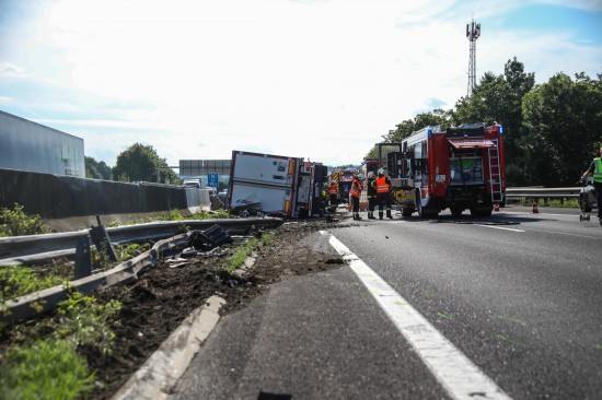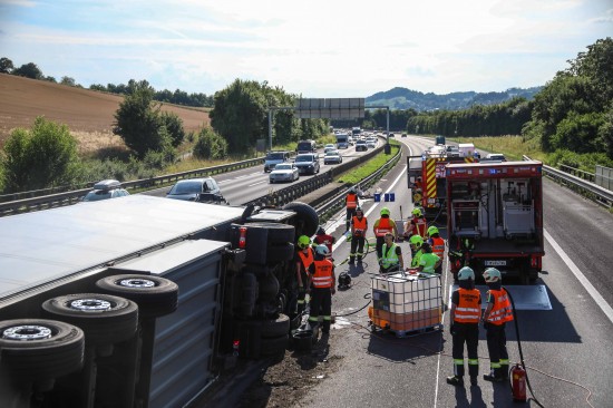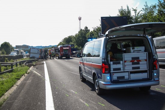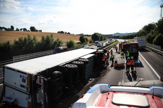 Ein LKW-Sattelzug ist am Freitagnachmittag auf der A8 Innkreisautobahn in Pichl bei Wels (Bezirk Wels-Land) umgestürzt.
