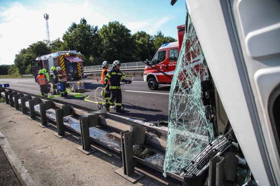 Der Unfall passierte Freitagnachmittag auf der A8 Innkreisautobahn auf Höhe der Autobahnanschlussstelle Pichl bei Wels. Ein Sattelzug ist dabei aus noch unbekannten Gründen im Bereich der Mittelleitschiene umgestürzt. Einsatzkräfte zweier Feuerwehren wurden zu den Aufräumarbeiten alarmiert. Die Einsatzkräfte pumpten den Dieseltank der Zugmaschine leer. Ein Spezialbergeunternehmen wurde zur Bergung angefordert.