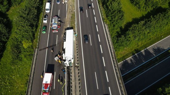 Pichl bei Wels. Ein LKW-Sattelzug ist am Freitagnachmittag auf der A8 Innkreisautobahn in Pichl bei Wels (Bezirk Wels-Land) umgestürzt.