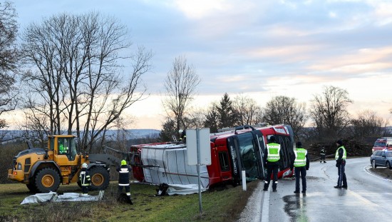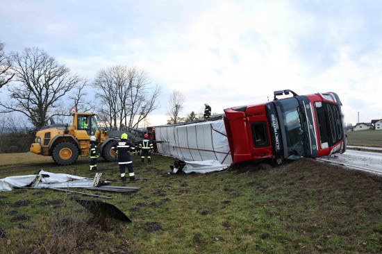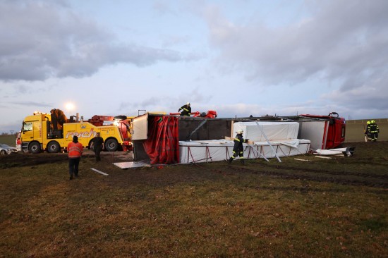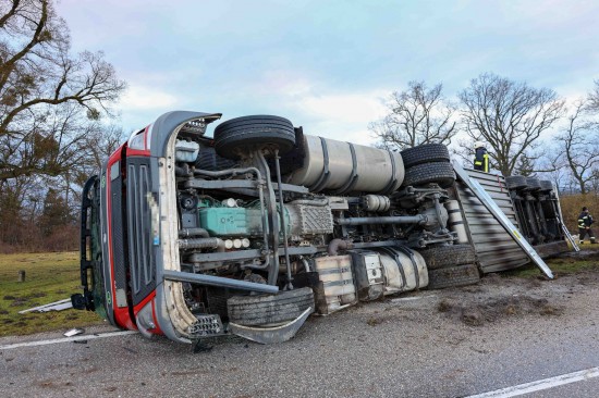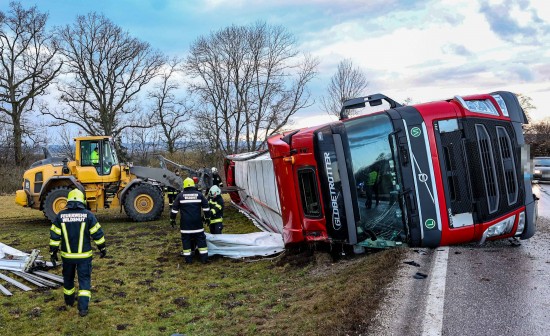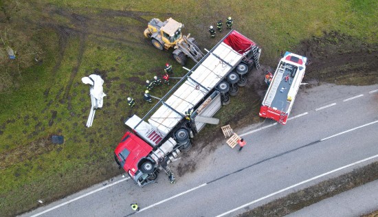 LKW-Sattelzug bei St. Pantaleon umgestürzt