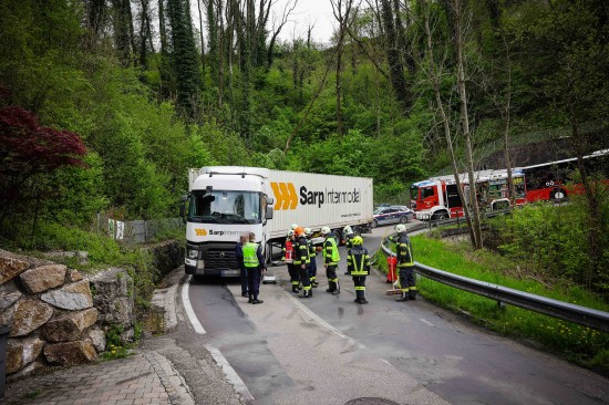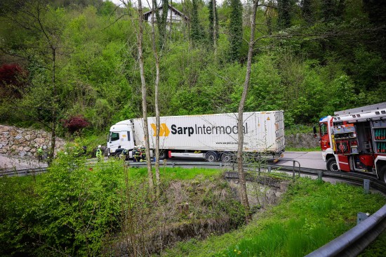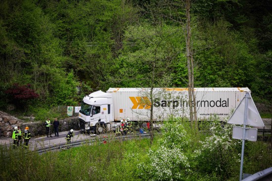 Hochburg-Ach. Eine enge Kehre der L501 Weilhartstraße wurde Mittwochnachmittag einem LKW-Sattelzug in Hochburg-Ach (Bezirk Braunau am Inn) zum Verhängnis.