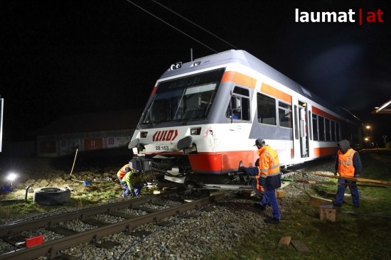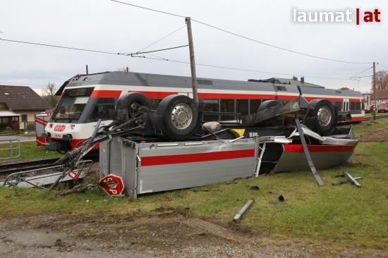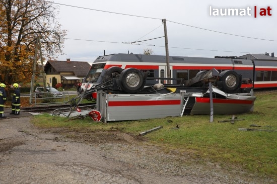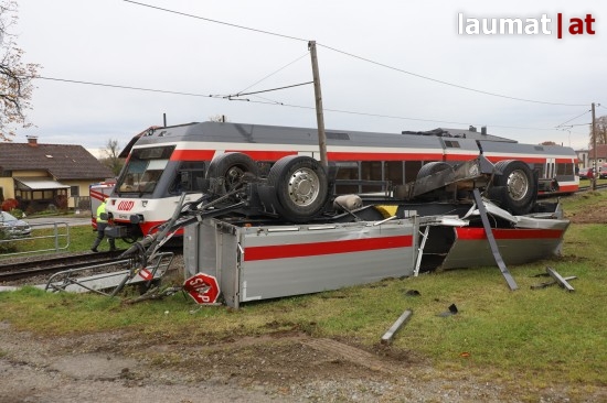 Ein schwerer Unfall zwischen einer Triebwagengarnitur der Lokalbahn und einem LKW-Anhänger bei Waizenkirchen (Bezirk Grieskirchen) endete Donnerstagnachmittag glimpflich.